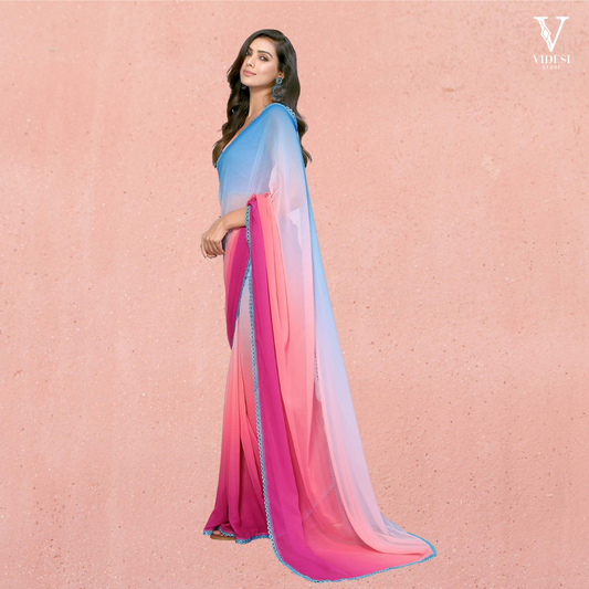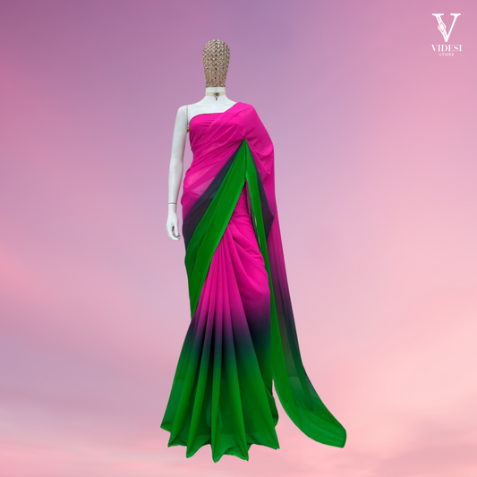 Unleash your inner fashionista with the Rachel Lively Pink Digital Printed Faux Georgette Saree! Made...