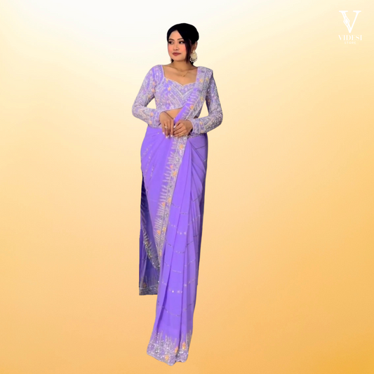Discover the epitome of elegance with our Kathryn Vibrant Purple Sequined Embroidered Faux Georgette Saree,...