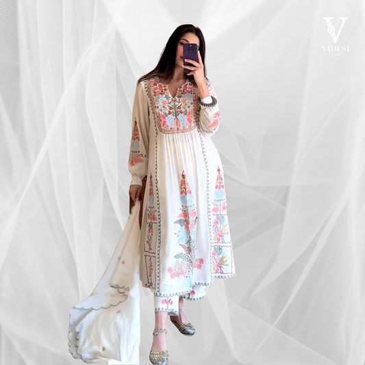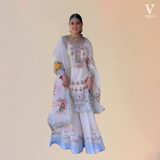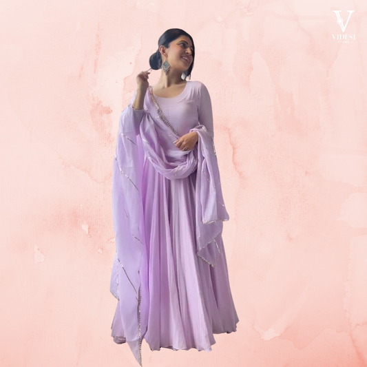 The Fatima Pure Soft Tebby Organza Silk Anarkali Gown With Gota Patti Dupatta effortlessly blends...