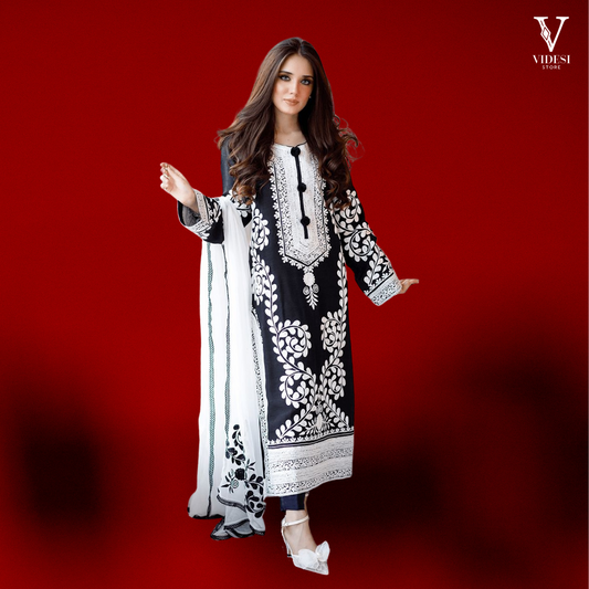 Experience sheer elegance with this Mhia Elegant Faux Georgette Embroidered Suit With Soft Butter Silk...