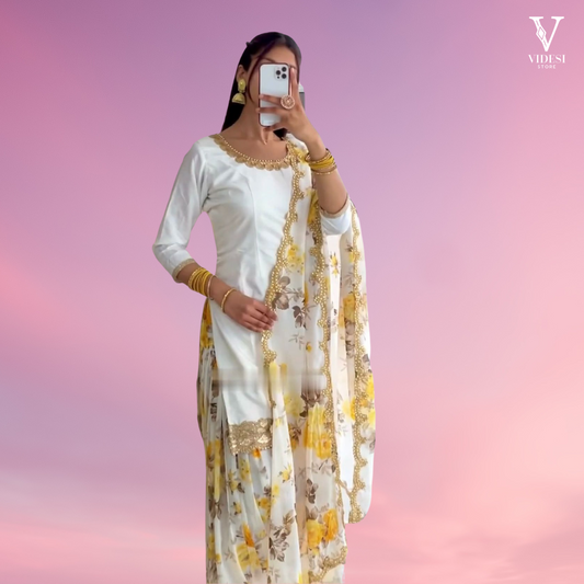 Step into the spotlight with Kelsey Stunning Sequined Faux Georgette Suit With Digital Printed Dupatta!...