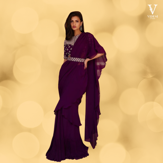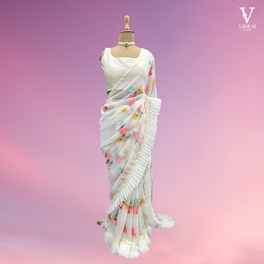 Unleash your inner diva with our exquisite Lara Sleek Faux Georgette Ruffle Saree With Taffeta...