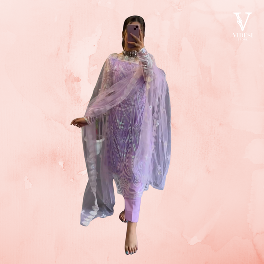 Embrace the allure of our captivating Melania Sophisticated Lavender Soft Satin Net and Micro Cotton...