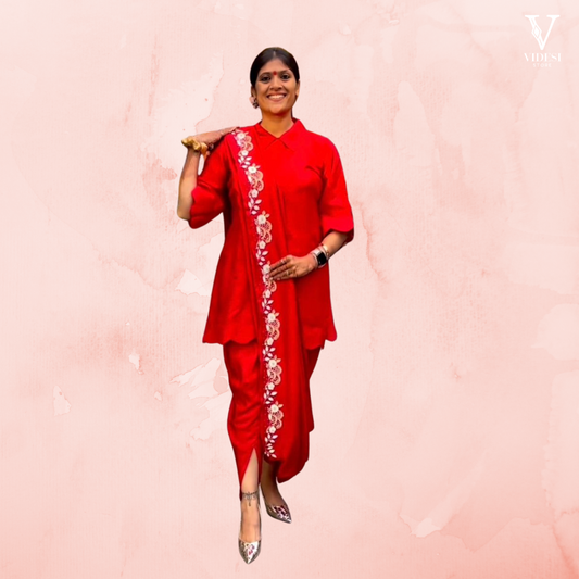 Experience the timeless allure of our Nelia Stylish Heavy Parampara Silk Suit with Dhoti Pants...