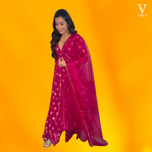 Get ready to dazzle in our Francesca Heavy Embroidered Sequined Chinon Silk Gown! This gown...