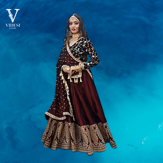 An exquisite and beautiful piece for your special occasion, this Gianna mono silk lehenga features...