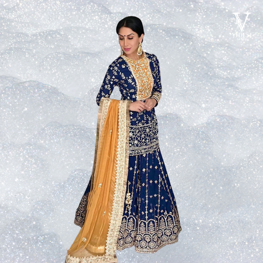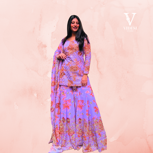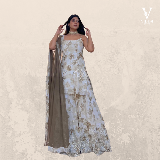 Embrace elegance with our Jackie Faux Georgette Gown With Cotton Pants, adorned with intricate embroidery...