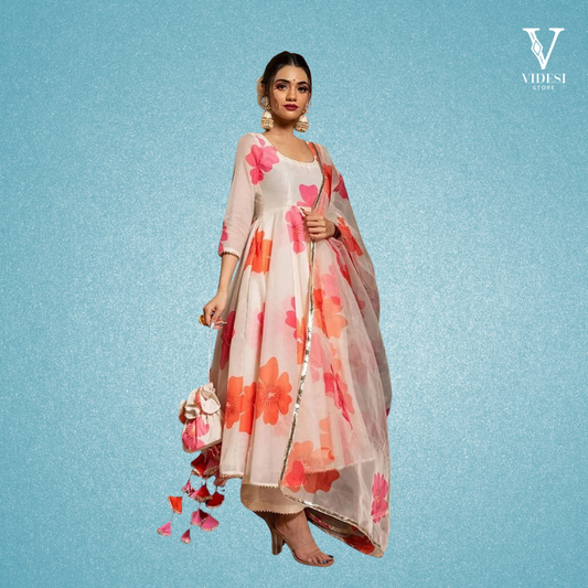Check out the Ivanna Floral Printed Heavy Chanderi Suit With Organza Dupatta - it's a...