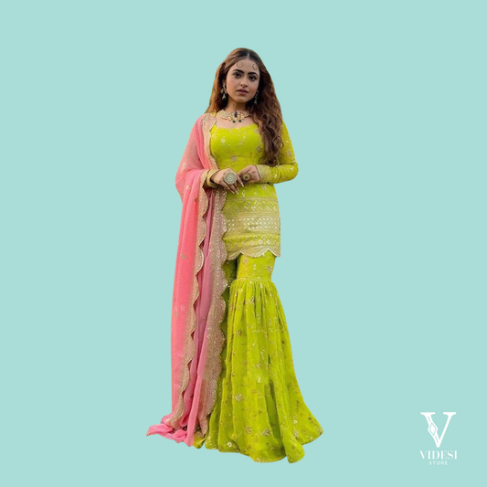 Make a statement in this truly vibrant and stunning ensemble! The Ivy Vibrant Green Embroidered...