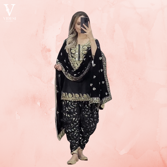 Get ready to dazzle and shine with our Arely Fashionable Embroidered Sequined Faux Georgette Suit!...