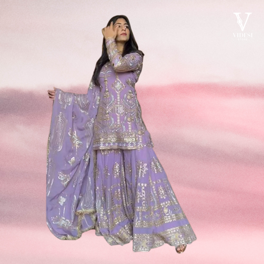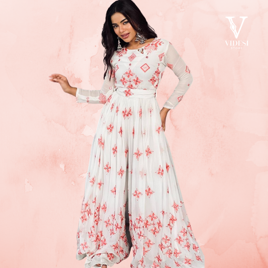 Indulge in sheer elegance and sophistication with our exquisite Angeline Pristine Faux Georgette Sequined Suit...
