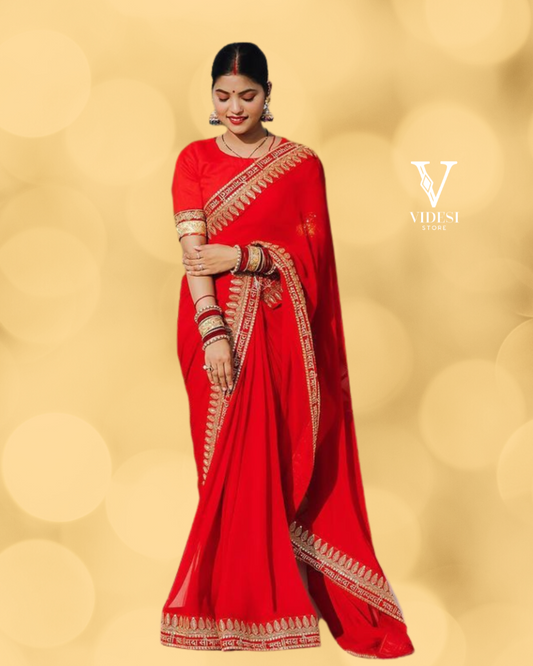 Indulge in luxury with the Aniya Saree, crafted with soft georgette and adorned with delicate...