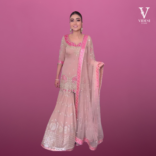 Our Beatrice Soft Pink Heavy Embroidered Faux Georgette Suit is a must-have for special occasions...
