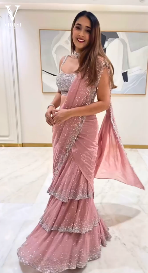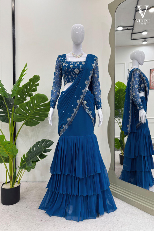 Introducing Melina, the embodiment of luxury and elegance. Made from premium georgette fabric with intricate...