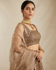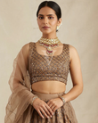 Own the room in this provocative Ahtisa lehenga, where glittering sequin embroidery transforms delicate net into a show-stopping silhouette with unrestrained volume and expertly engineered layering for commanding presence. Craft your signature style with the unstitched blouse and dupatta, both adorned with the same mesmerizing embellished detailing to forge an unmistakably bold and unforgettable ensemble.