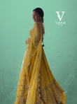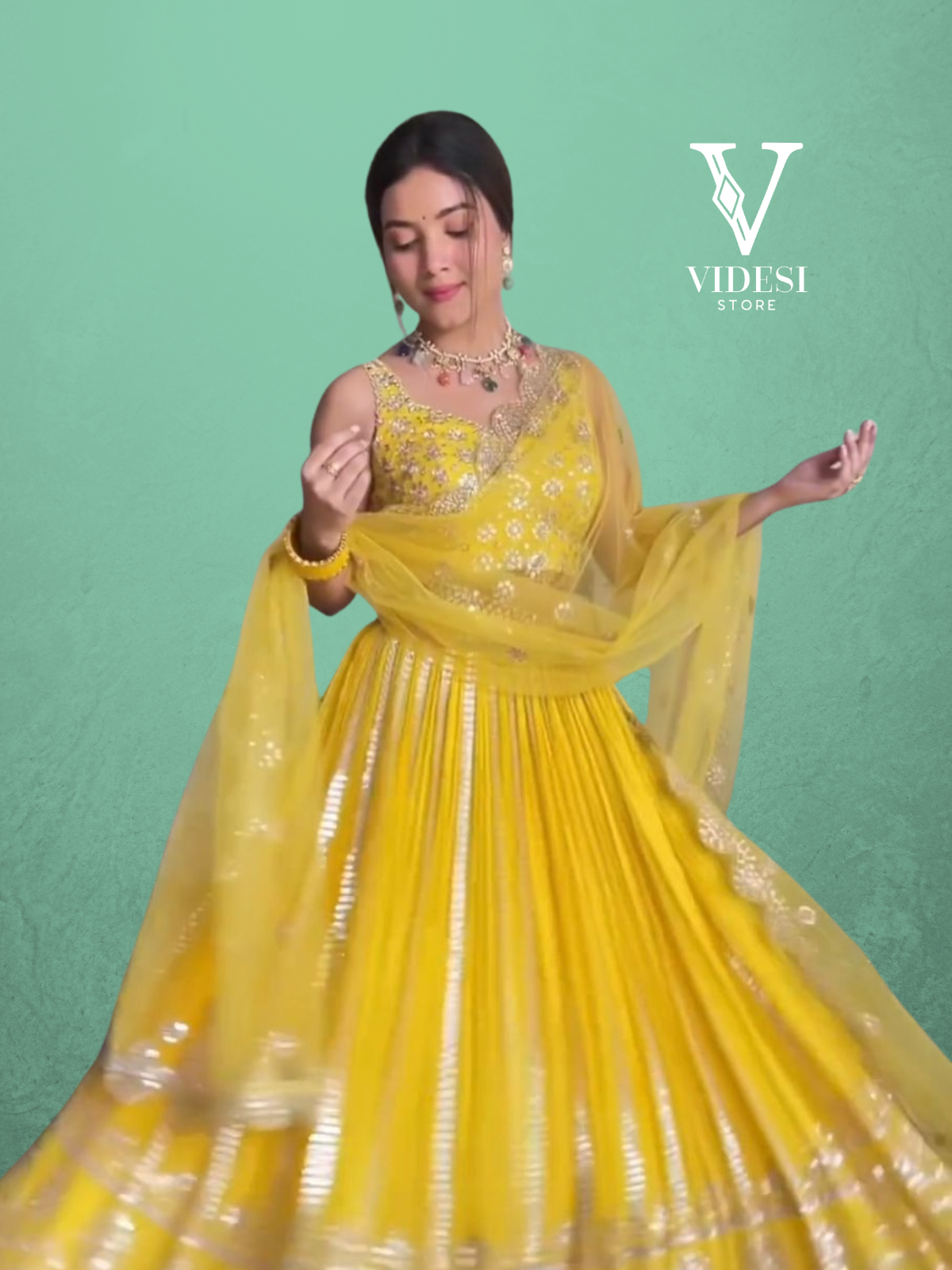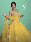 Amaji Vibrant Yellow Georgette Embroidered Sequined Lehenga
