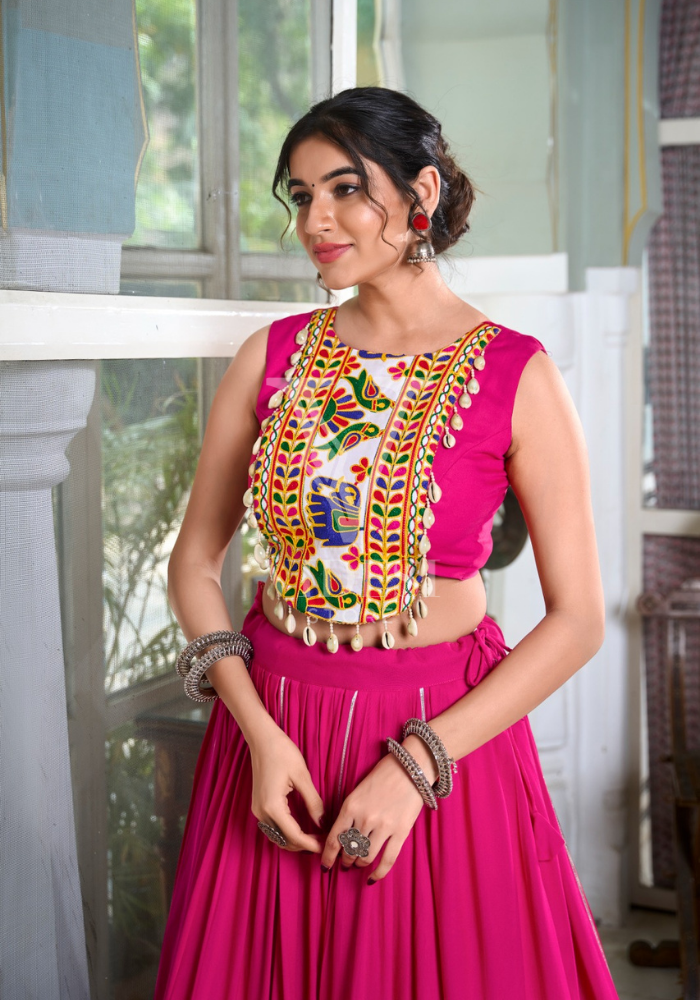 Amira Rayon Fabric With Gamthi And Kodi Work Lehenga