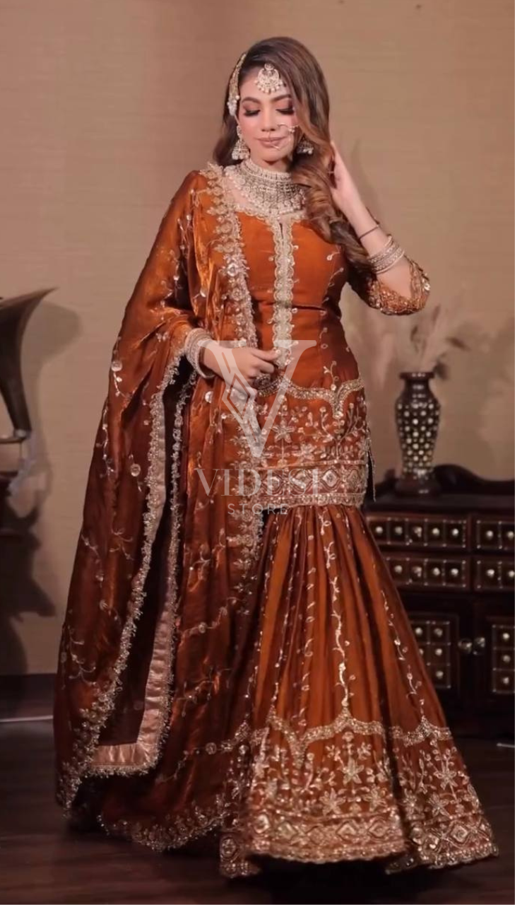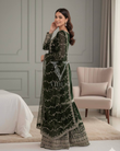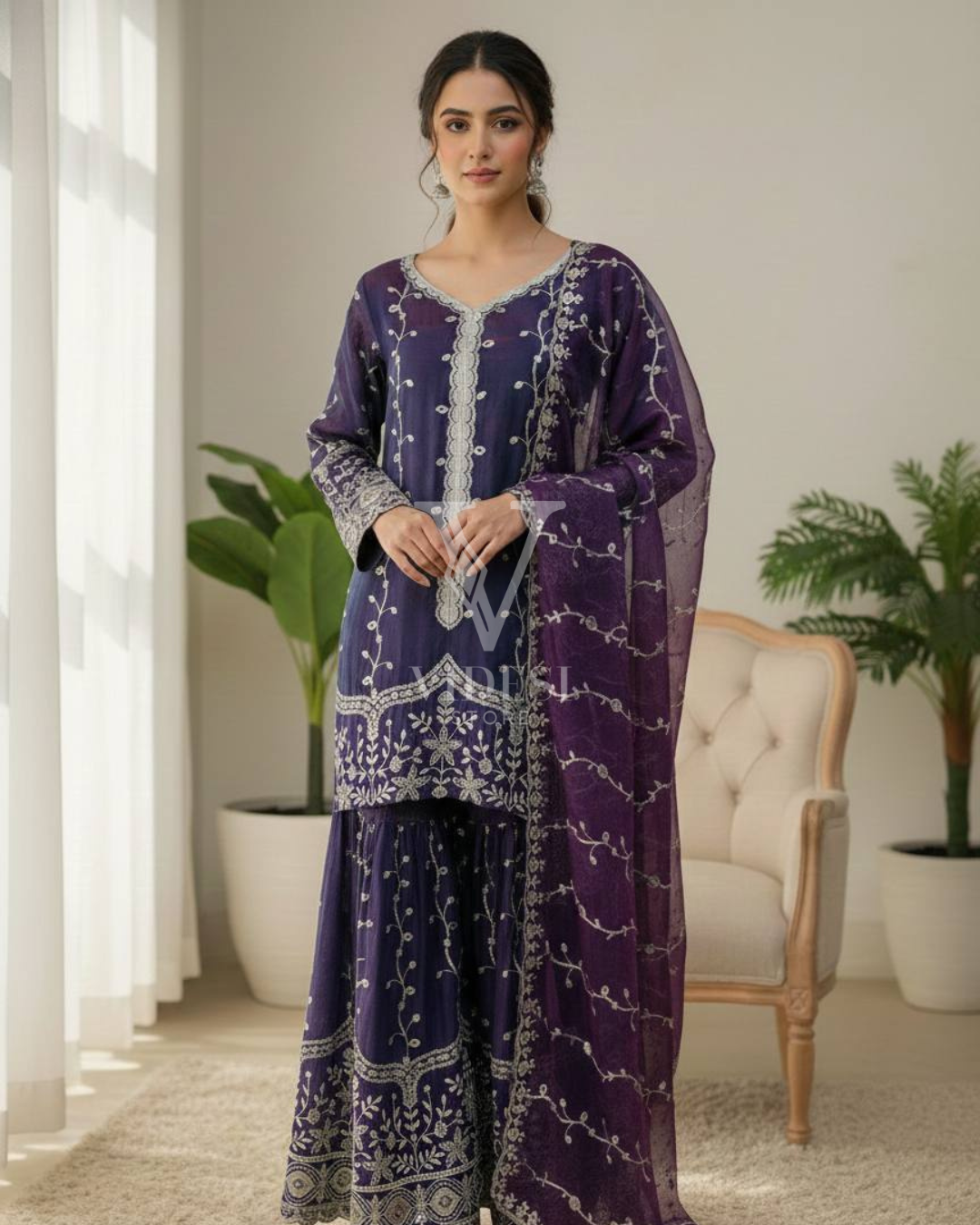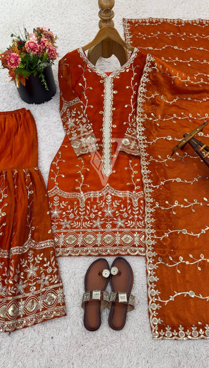 Get ready to dazzle in this luxurious silk Anette three-piece set where every piece—from the full-sleeved top to the flared bottom and matching dupatta—is adorned with gorgeous embroidery and sequin work that catches the light beautifully. Fully stitched and ready to wear with a breathable micro cotton lining, this playful three-piece set comes in multiple sizes for the perfect fit.