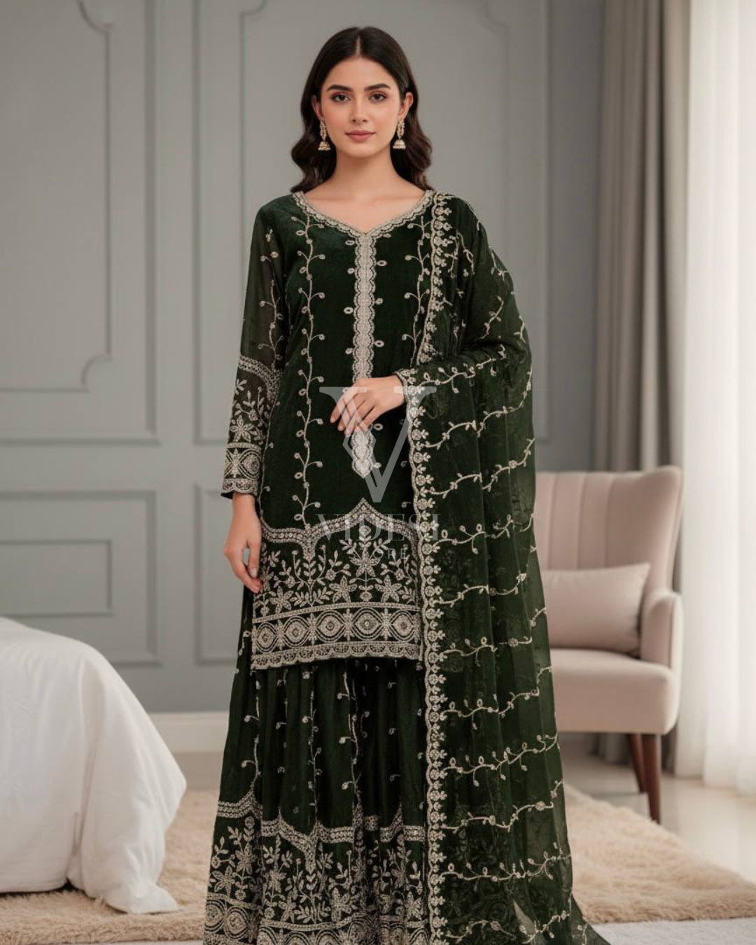 Anette Embroidered Sequined Three-Piece Set