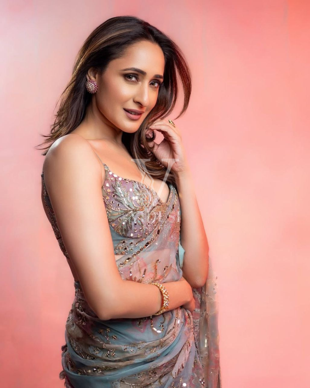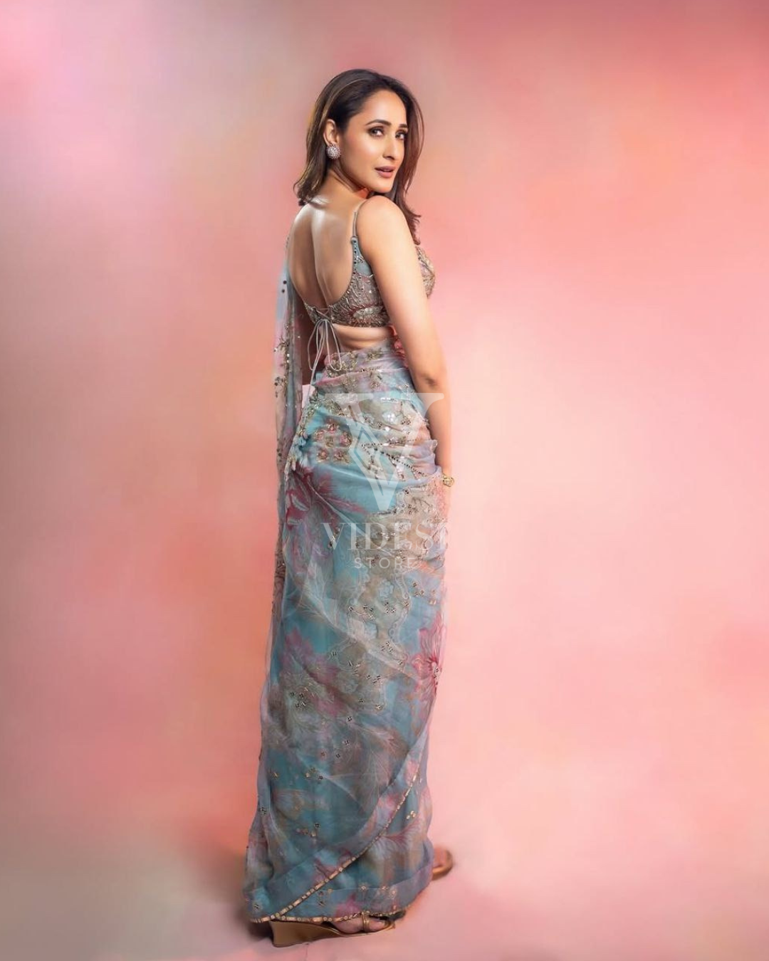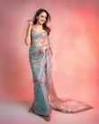Fatima Sequined Embellished Printed Tabby Silk Saree With Mirror Work