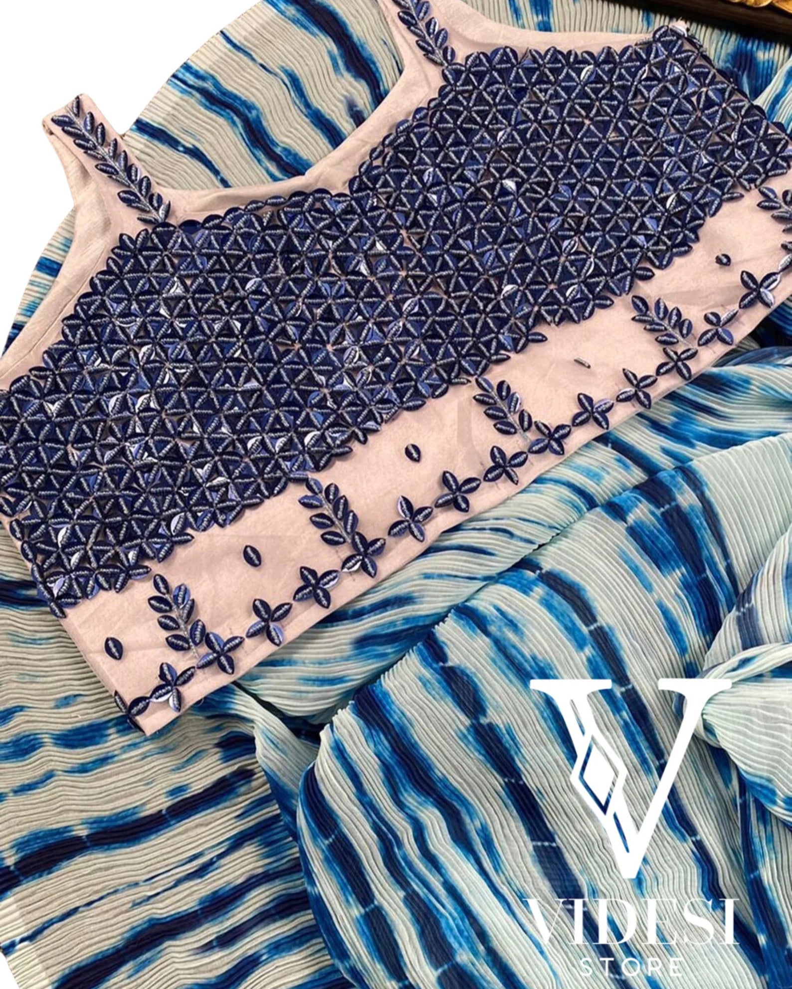 This unique saree will be a perfect piece for your wardrobe. It is an elegant combination of luxurious fabric and amazing sequin work, which makes this attire different from others. The vibrant color of this dress will be the center of attraction anywhere you wear it in.