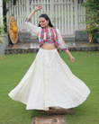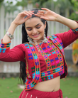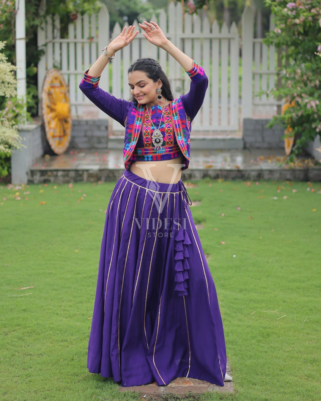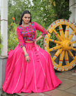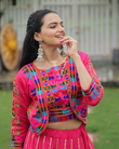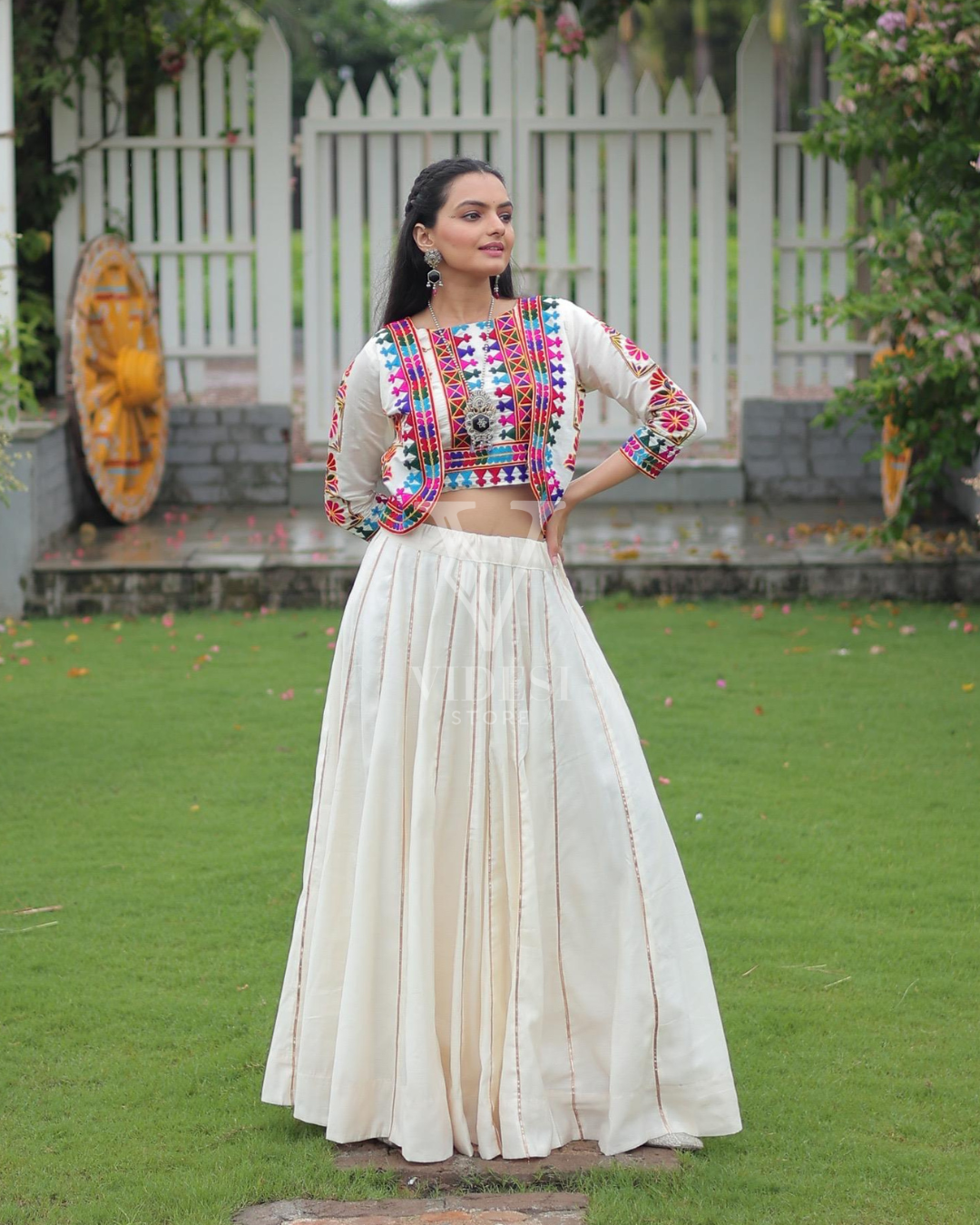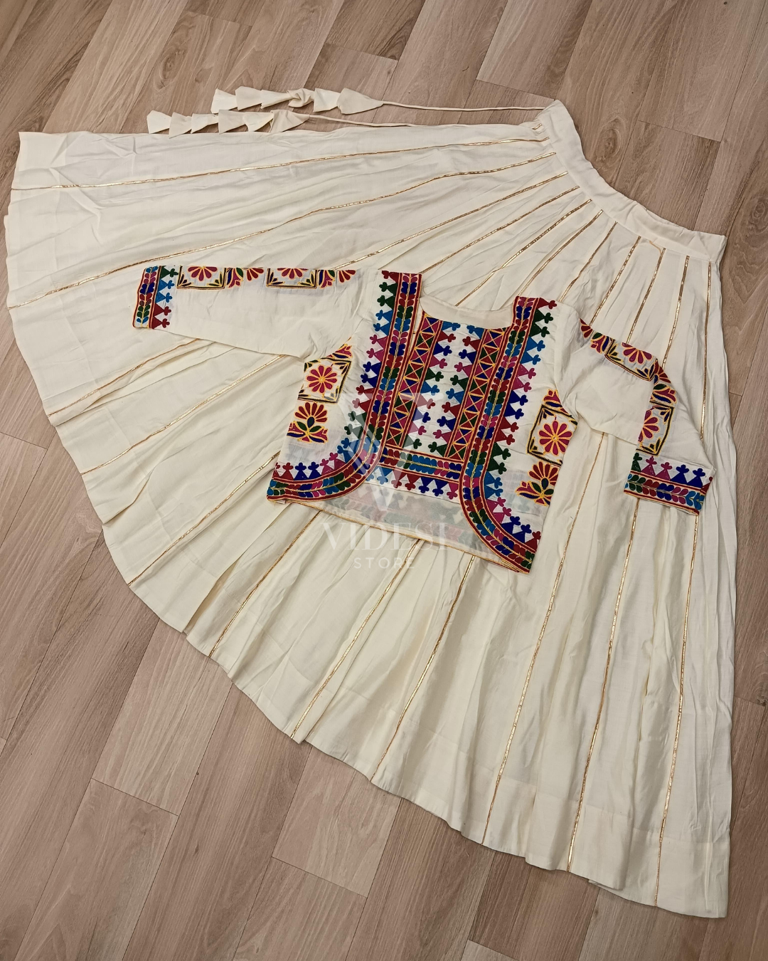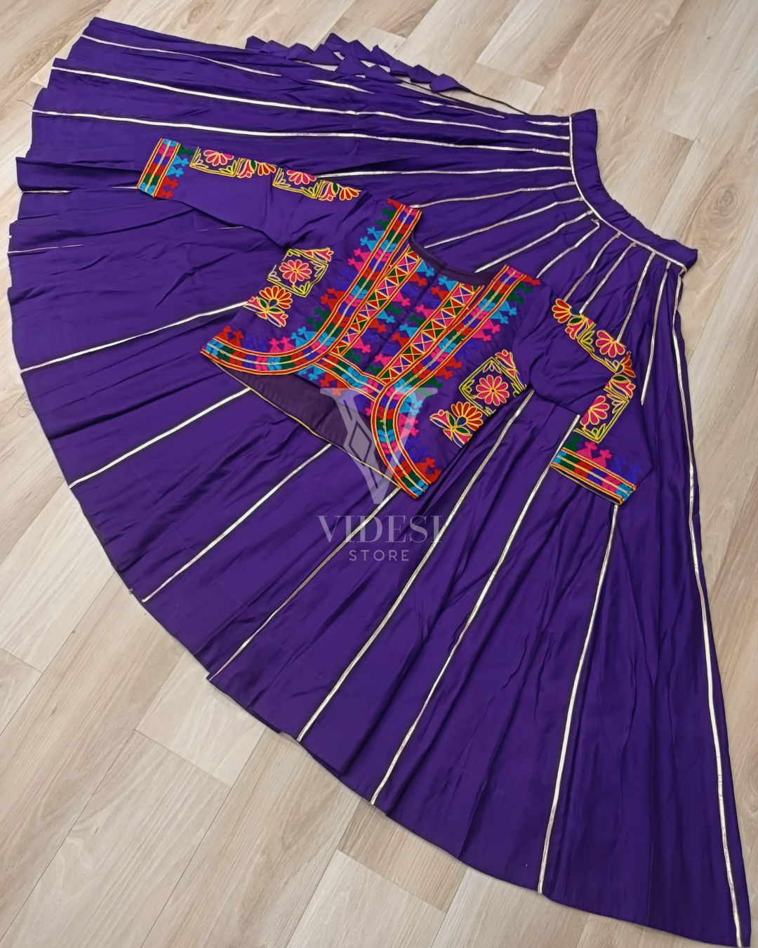 Celebrate Sunisa Roman Gotta-Patti Lehenga with the colorful charm of this embroidered piece, designed to light up every garba and dandiya night. Its detailed embroidery adds sparkle to every twirl, making your dance moves stand out. Perfect for girls and women ready to blend tradition with festive fun!