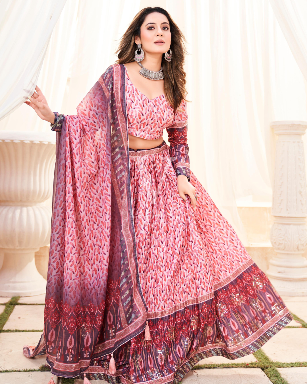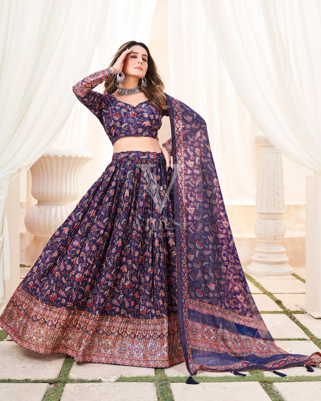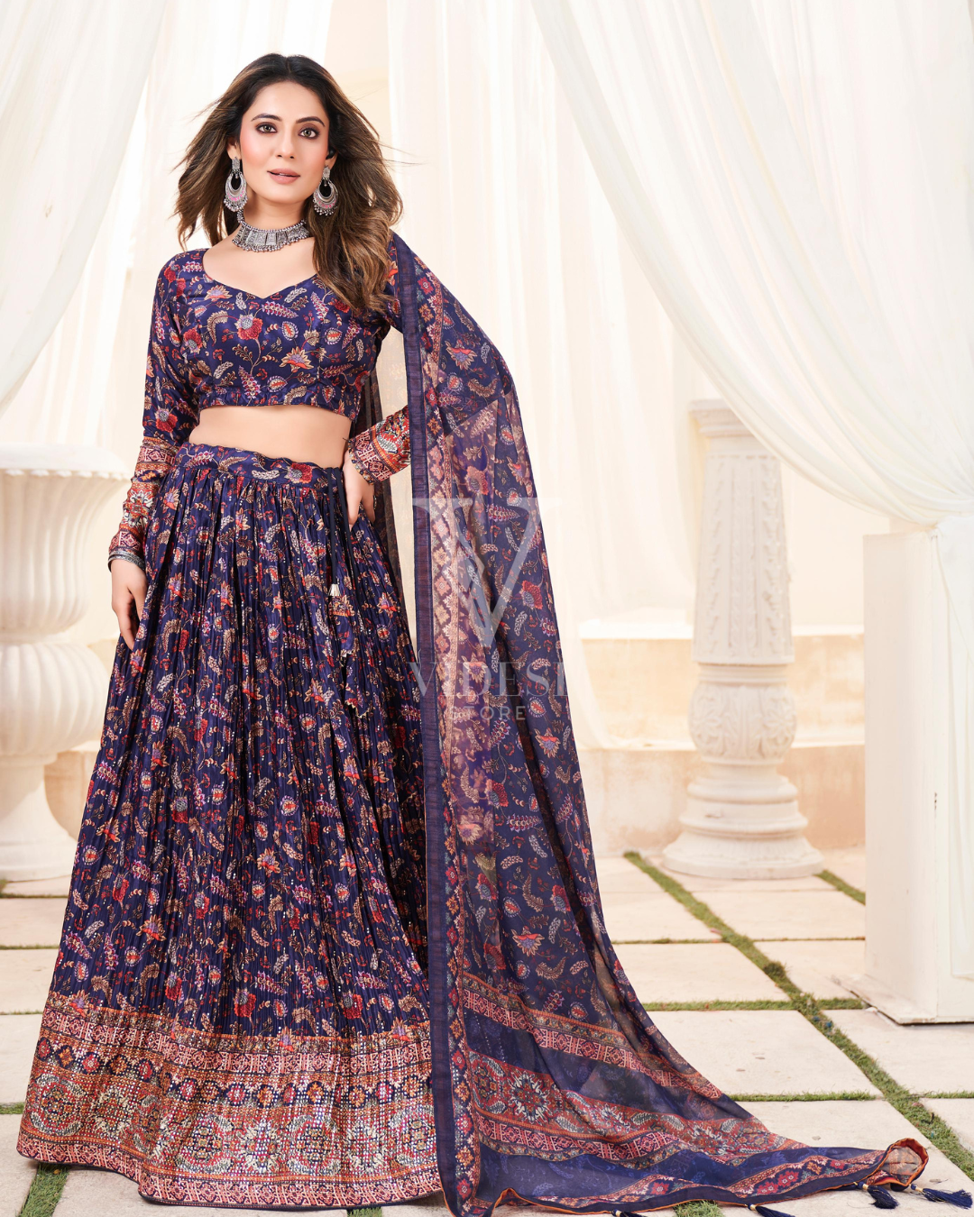 Vivan Chinon Printed Lehenga With Mukesh Work
