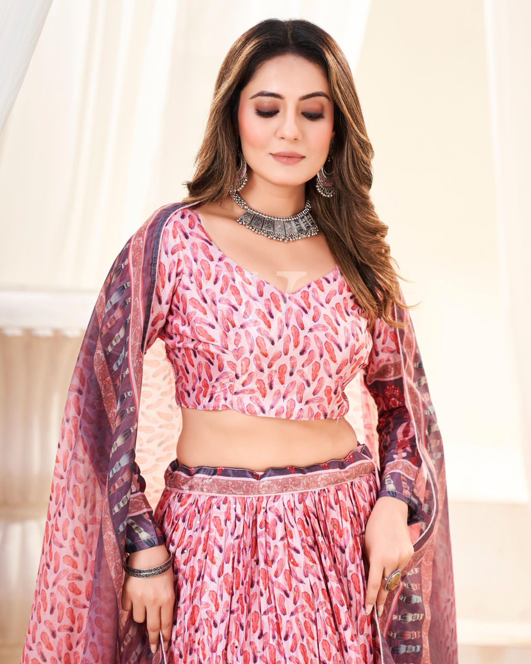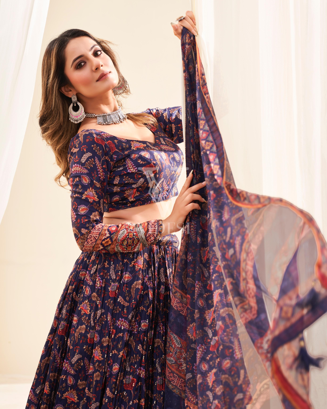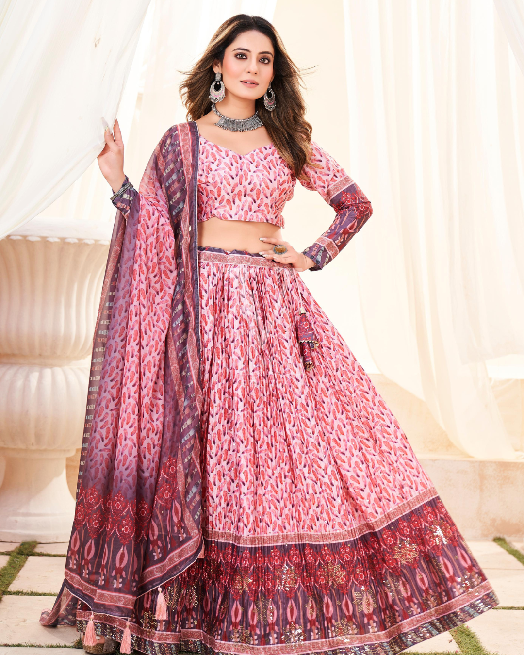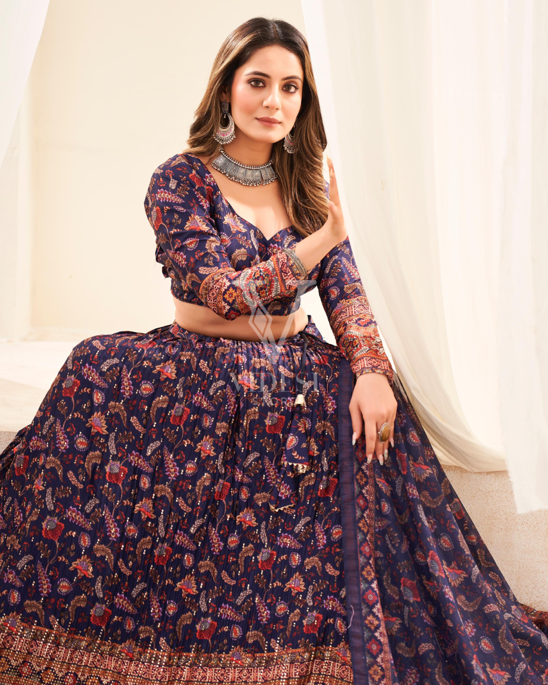 Vivan Chinon Printed Lehenga With Mukesh Work